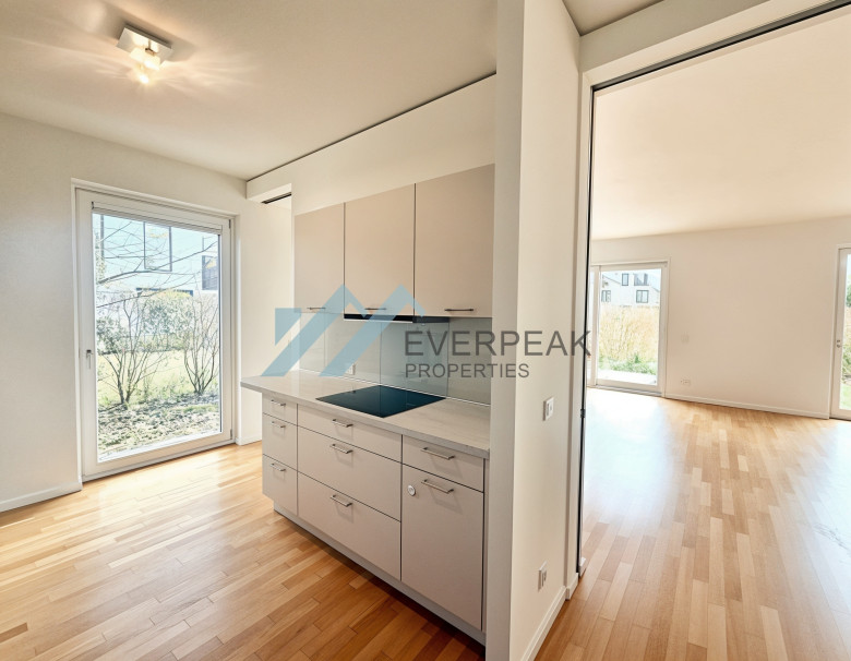 Der großzügige Wohn- und Essbereich bildet das Herzstück der Wohnung. Bodentiefe Fensterfronten schaffen eine fließende Verbindung zur weitläufigen Südwestterrasse und zum privaten Gartenbereich. Der gesamte Außenbereich inklusive Terrasse umfasst beeindruckende 233 m² und bietet damit ein echtes Alleinstellungsmerkmal: viel Platz, außergewöhnliche Privatsphäre und vielfältige Möglichkeiten zur individuellen Gestaltung. Hier entsteht ein Wohngefühl, das Innen- und Außenräume zu einem harmonischen Ganzen verschmelzen lässt.