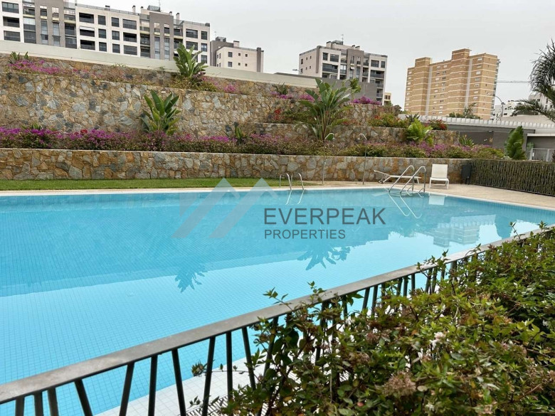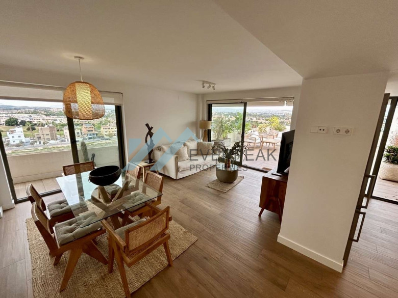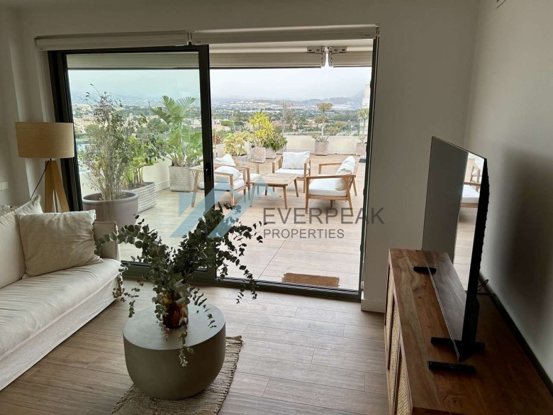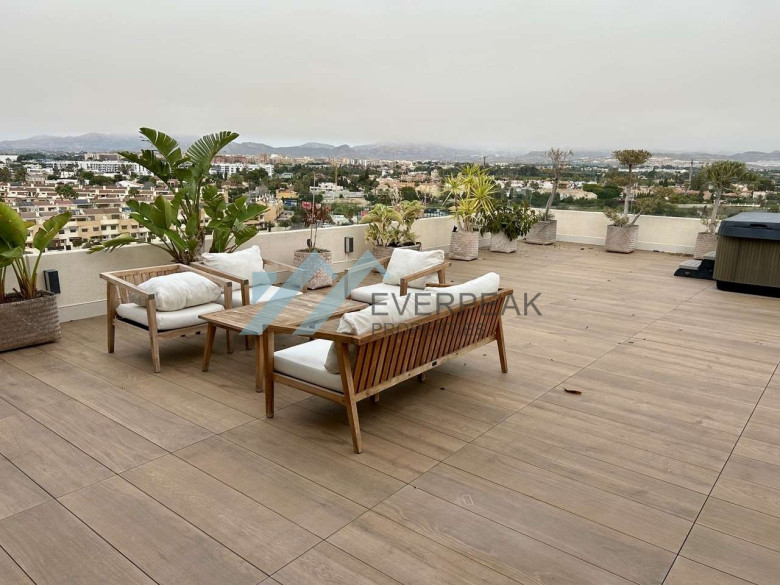 Dieses exklusive Penthouse überzeugt durch eine großzügige Raumaufteilung, viel Tageslicht und eine außergewöhnlich große private Terrasse. Die Gesamtfläche beträgt ca. 200 m² und teilt sich in ca. 100 m² Wohnfläche sowie ca. 100 m² Terrassenfläche auf, die ein ganzjähriges Leben im mediterranen Klima ermöglicht. Die Wohnung ist vollständig außenliegend und bietet drei geräumige Schlafzimmer, zwei Badezimmer, eine separate Küche, einen hellen Wohn- und Essbereich sowie einen zusätzlichen Balkon. Ein besonderes Highlight ist die weitläufige Terrasse mit elektrischen Markisen, die sich ideal für Entspannung, gesellige Abende oder die Einrichtung einer privaten Chill-out-Zone eignet.