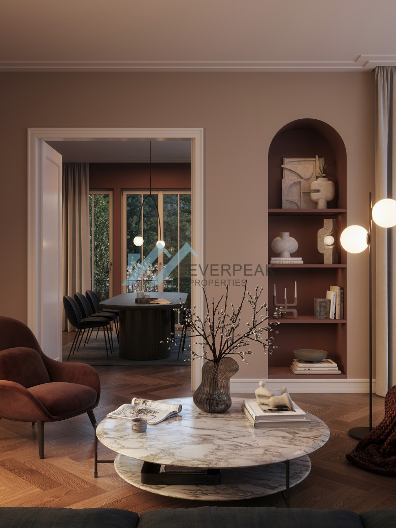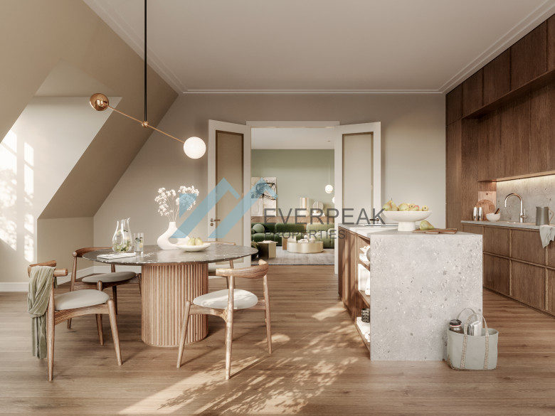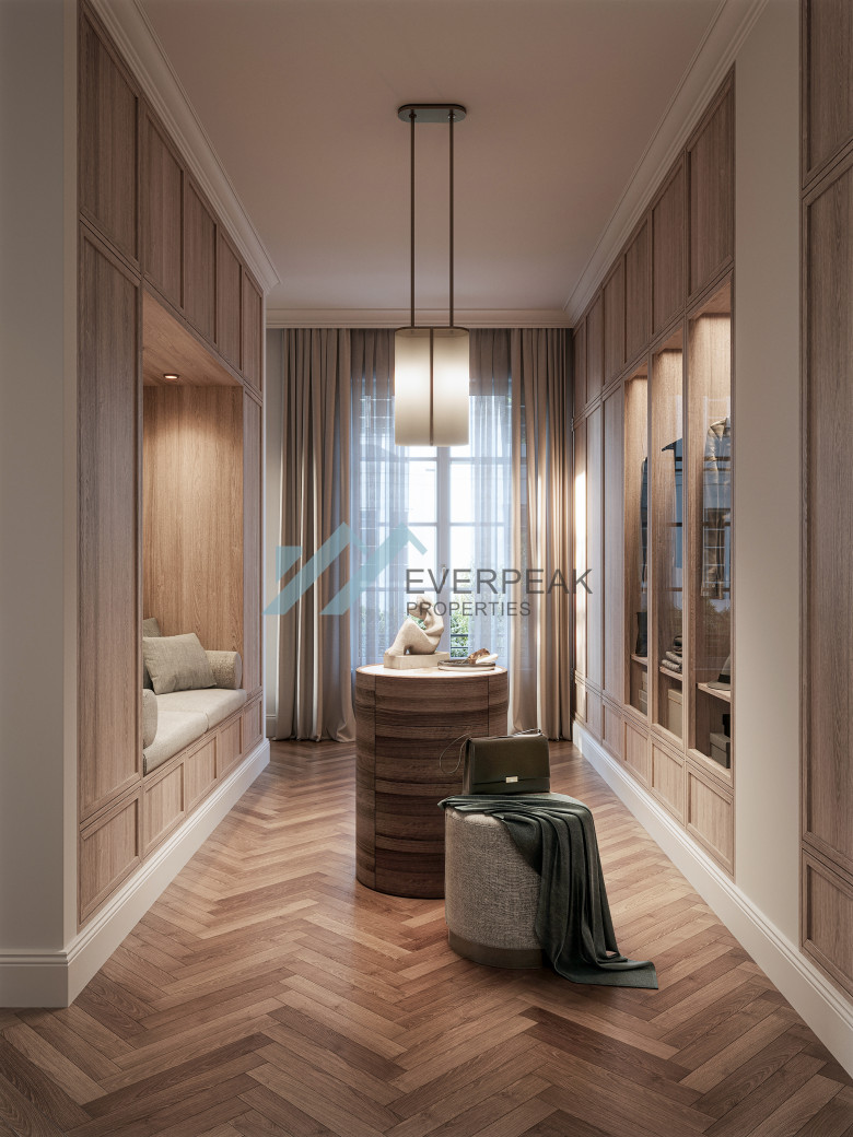 Die Villen beherbergen luxuriöse Eigentumswohnungen und Townhouses mit großzügigen Grundrissen und villentypischen Sichtachsen. Repräsentative Wohnbereiche und private Rückzugszonen sind klar strukturiert und bieten ein Höchstmaß an Komfort und Individualität.